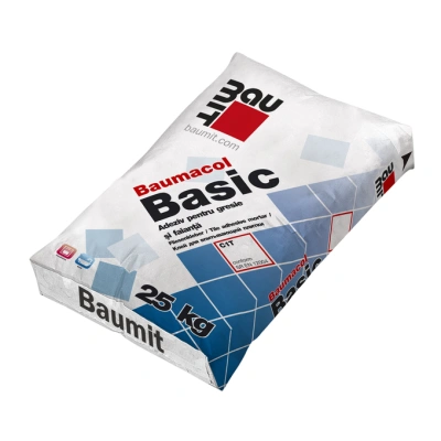 Клей для плитки Baumacol Basic Baumit — это универсальный цементный клей класса C1 T по стандарту SR EN 12004, разработанный для надежной укладки керамической плитки и натурального камня с водопоглощением более 3% внутри помещений. Смесь отличается удобством применения, хорошей адгезией и сниженным сползанием, что обеспечивает аккуратную и долговечную облицовку.
