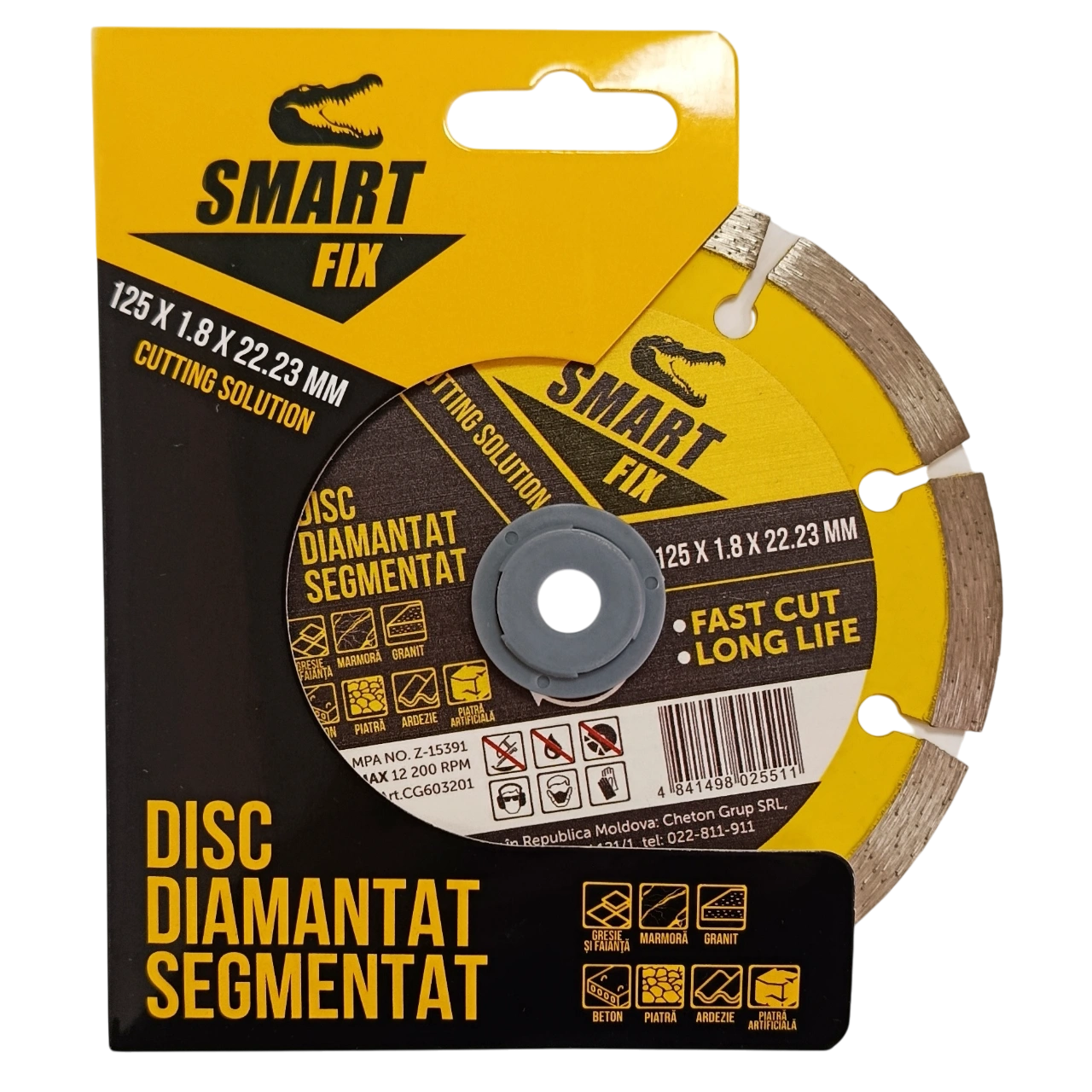Диск алмазный отрезной Segmentat Smart Fix сочетает в себе высокую скорость реза и долговечность. Благодаря возможности восстановления рабочих свойств после износа, диск обеспечивает стабильную производительность при длительном использовании. Это надежное решение для профессионалов, которым важно качество, прочность и эффективность при обработке твердых строительных материалов.