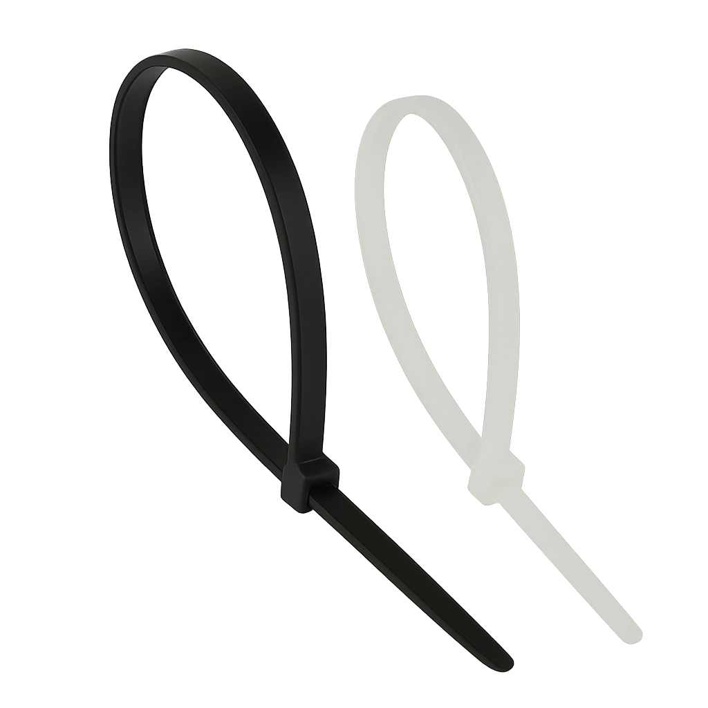Изготовленные из прочного и износостойкого нейлона, хомуты отличаются долговечностью и устойчивостью к внешним воздействиям. Они доступны в двух цветах — белом и черном. Белые стяжки подходят для светлых интерьеров и удобны при маркировке кабелей, а черные — устойчивы к ультрафиолетовому излучению и подходят для наружного применения.
