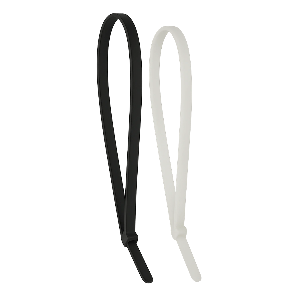 Изготовленные из прочного и износостойкого нейлона, хомуты отличаются долговечностью и устойчивостью к внешним воздействиям. Они доступны в двух цветах — белом и черном. Белые стяжки подходят для светлых интерьеров и удобны при маркировке кабелей, а черные — устойчивы к ультрафиолетовому излучению и подходят для наружного применения.