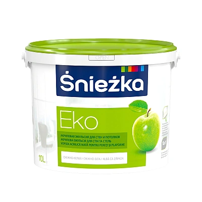 Краска моящаяся для стен и потолков Eko Sniezka - это эмульсионная краска, предназначенная для декоративной окраски стен и потолков внутри помещений: цементных, известково-цементных, известковых, гипсовых штукатурок, гипсокартона, дерева и древесных материалов.